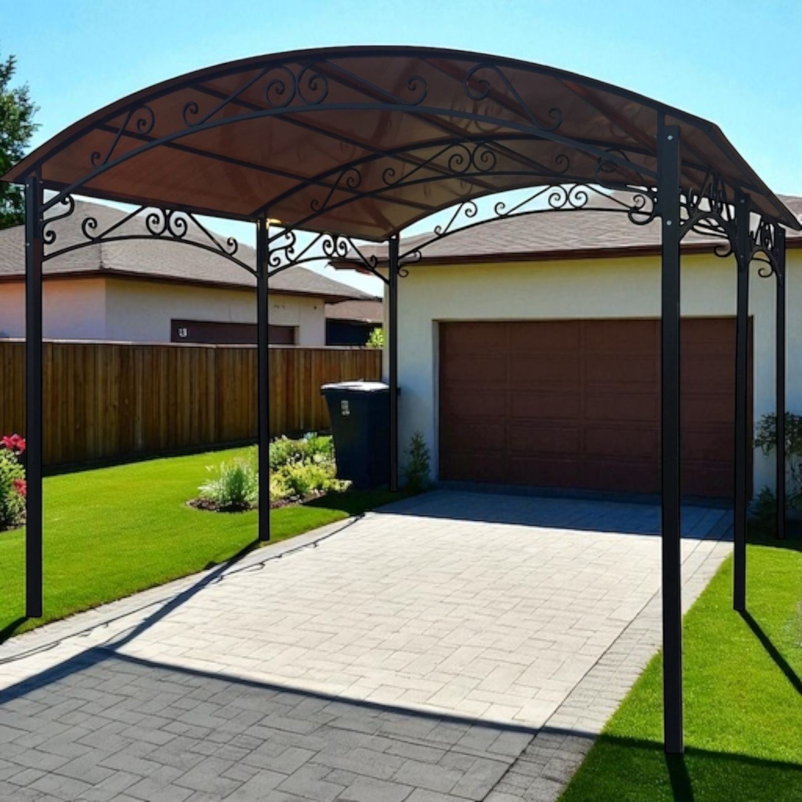 Материалы: каркас - металл, крыша - поликарбонат.