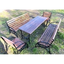 Скамейка и кресло: каркас - сталь с порошковым покрытием RAL 9005, сиденье - сосна, ель.