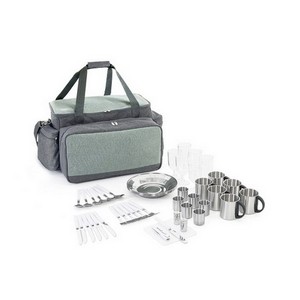 Включает все необходимые столовые приборы, посуду, аксессуары и изотермическую сумку-холодильник, объединенные в компактный и удобный комплект.